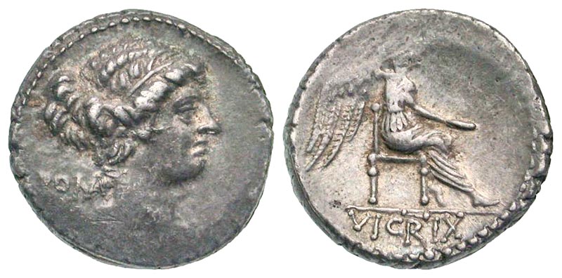 Lot 59-171. M. Porcius Cato. 89 B.C. AR denarius. Rome mint. Ex D. Thomas collection.