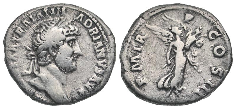Lot 59-192. Hadrian. A.D. 117-138. AR denarius. Rome mint, struck A.D. 123. scarce.
