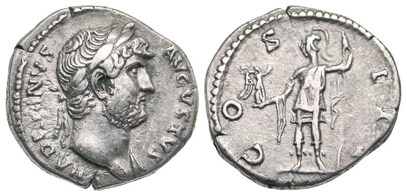Lot 59-193. Hadrian. A.D. 117-138. AR denarius. Rome mint, struck A.D. 124-128.