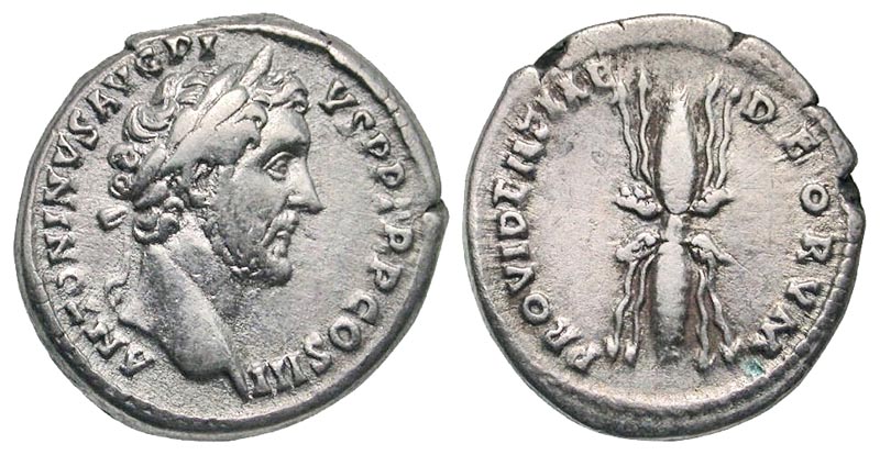 Lot 59-195. Antoninus Pius. A.D. 138-161. AR denarius. Rome mint, struck A.D. 140-143. Scarce.