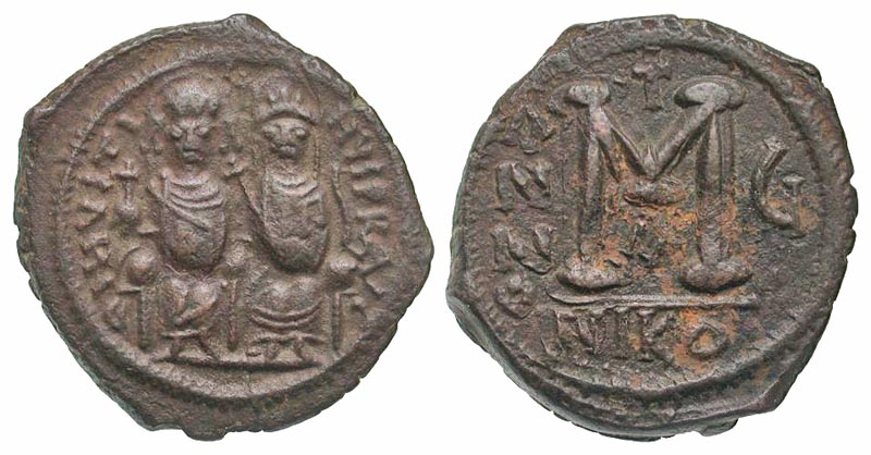 Lot 59-258. Justin II. 565-578. AE follis. Nicomedia mint, struck 570-571.