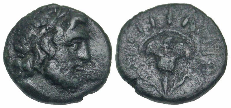Islands off Caria, Rhodos. Rhodes. Ca. 188-84 B.C. AE 16 (15.5 mm, 2.54 g, 12 h). Laureate head of Zeus right / Rose with bud on both sides; rising sun above. SNG Keckman 725; BMC 223. Fine, black patina.