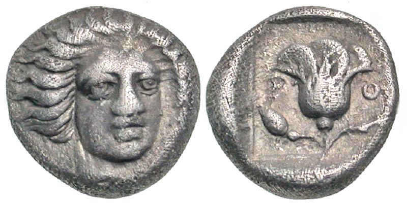 Lot 60-061. Islands off Caria, Rhodos. Rhodes. ca. 408-390 B.C. AR hemidrachm. Scarce, early fraction.