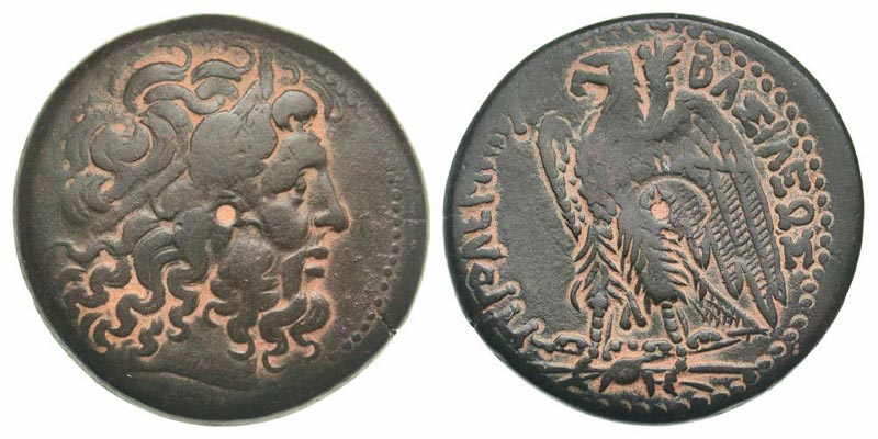 Lot 60-068. Ptolemaic Kingdom. Ptolemy IV Philopator. 222-205/4 B.C. AE diobol. Alexandria mint, dated RY 11 = 211 B.C.