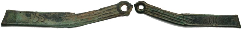 From David Tranbarger: This type of knife money takes it's name from the eye-shaped character on the obverse which has traditionally been interpreted as ming. An alternate reading is yi and according to Hartill (p.63) a mint for Ming knives has been found at Xiadu to the southwest of Beijing. This was the ancient site of Yi, the capital of the State of Yan in the 4th century BC. The coins themselves have been found widely throughout China and even in Korea and Japan.