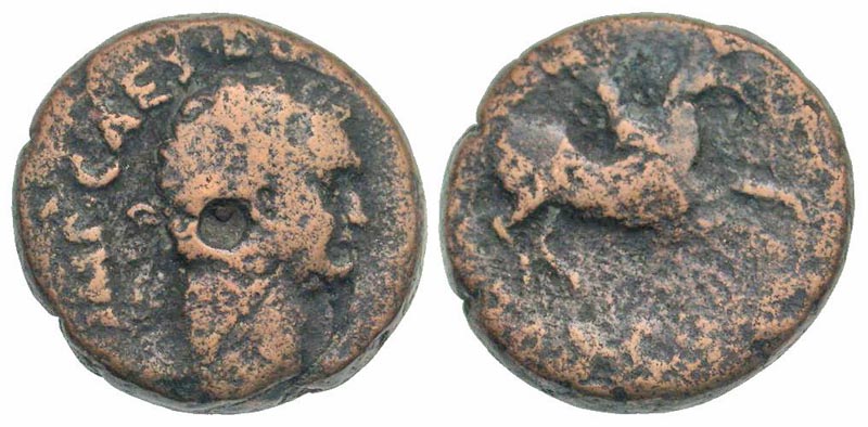 Corinthia, Corinth. Domitian. A.D. 81-96. AE 19 (19.2 mm, 6.74 g, 6 h). IMP CAES DO[MIT AVG GERM], laureate head right / [COL IVL] AVL COR, Pegasus flying right. RPC 181; BMC 576. Fine, porous.