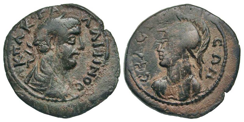 Cilicia, Seleuceia ad Calycadnum. Gallienus. A.D. 253-268. AE 27 (26.7 mm, 5.32 g, 7 h). AK Π ΛK ΓA-ΛΛIHNOC, laureate and cuirassed bust right, aegis on breastplate / CEΛEVK-EΩN, helmeted and draped bust of Athena left. SNG France 1068; SNG Levante -. aVF. Rare.