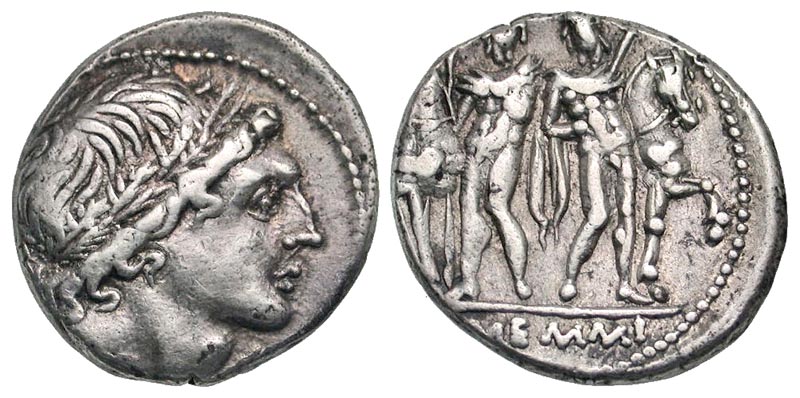 Crawford notes that this moneyer may have traveled to Egypt and the unusual depiction of the Dioscuri may have been based on Egyptian artwork.