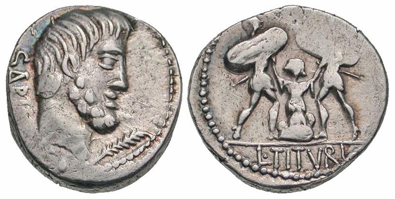 Lot 60-194. L. Titurius L.f. Sabinus. 89 B.C. AR denarius. Rome mint. Ex D. Thomas collection.