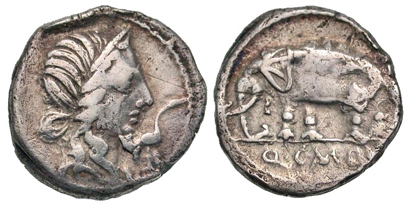 Lot 60-200. Q. Caecilius Q.f. L.n. Metellus Pius. 81 B.C. AR denarius. North Italian mint. Ex D. Thomas collection.