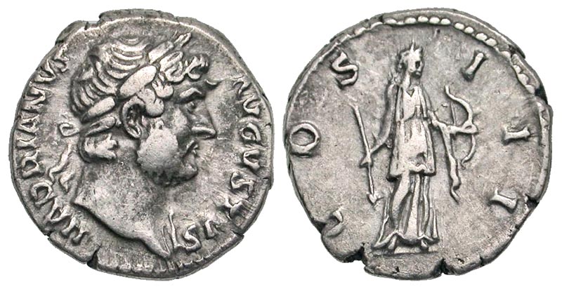 Lot 60-217. Hadrian. A.D. 117-138. AR denarius. Rome mint, struck A.D. 125-128.