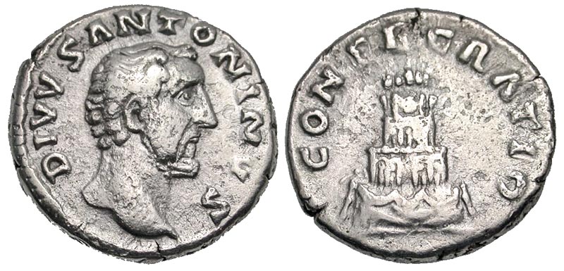 Lot 60-224. Divus Antoninus Pius. Died A.D. 161. AR denarius. Rome mint, struck under Marcus Aurelius and Lucius Verus, A.D. 161.