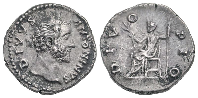 Lot 60-226. Divus Antoninus Pius. Died A.D. 161. AR denarius. Rome mint, under Marcus Aurelius and Lucius Verus, A.D. 162.
