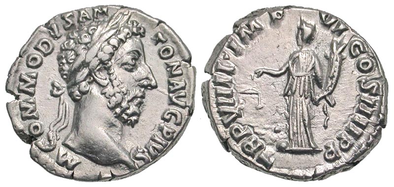 Lot 60-229. Commodus. A.D. 177-192. AR denarius. Rome mint, struck A.D. 184.
