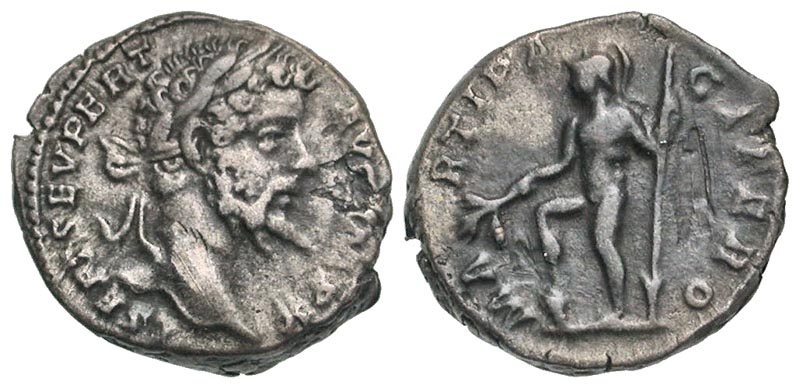 Lot 60-232. Septimius Severus. A.D. 193-211. AR denarius. Rome mint, struck A.D. 197-198.