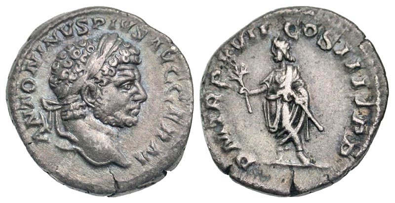 Lot 60-236. Caracalla. A.D. 198-217. AR denarius. Rome mint, struck A.D. 214.
