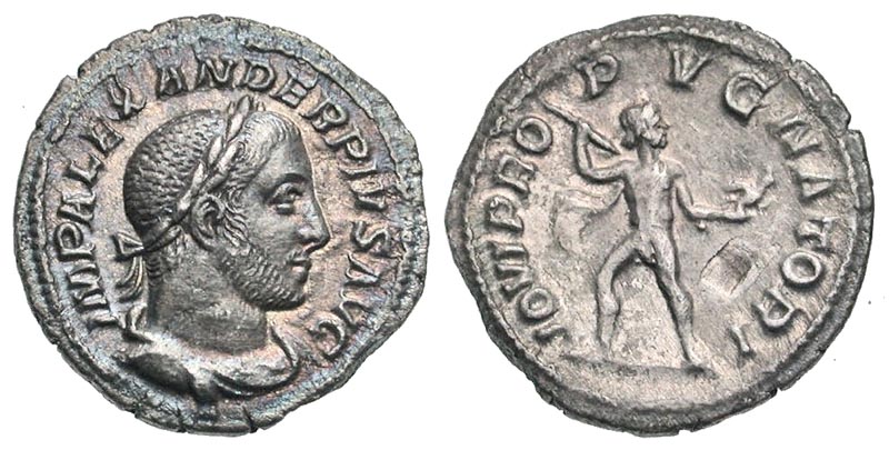 Lot 60-243. Severus Alexander. A.D. 222-235. AR denarius. Rome mint, struck A.D. 232.