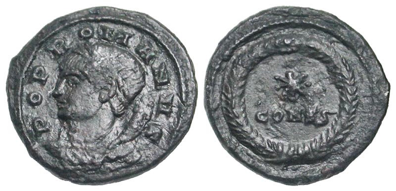 Constantine I. A.D. 307/10-337. AE 4 (14.3 mm, 124 g, 12 h). Constantinople mint, struck ca. A.D. 330. POP ROMANVS, draped bust of Genius Romanii facing left, cornucopia over shoulder / Wreath around, star over CONSS. RIC 22; LRBC 1067. aVF. Rare.