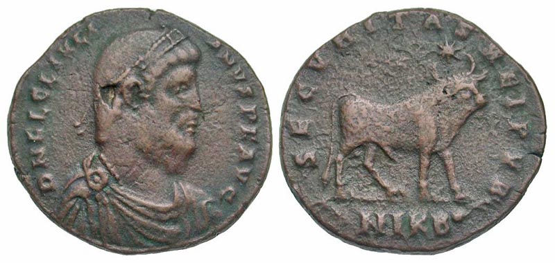 Lot 60-286. Julian II. A.D. 360-363. AE follis. Nicomedia mint, struck A.D. 361-363.