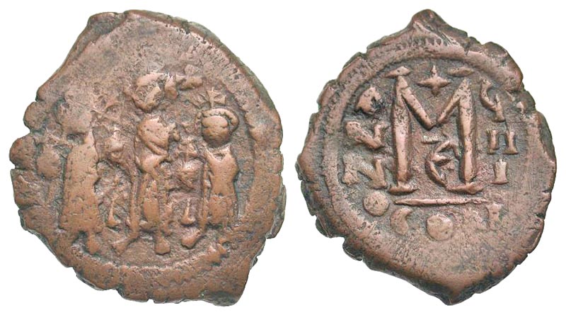 Lot 60-293. Heraclius. 610-641. AE follis. Constantinople mint, dated RY 9 = 618/619.