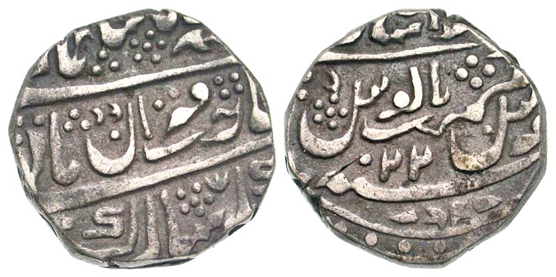 Lot 60-329. India, Princely States. Jaisalmer. Muhammad Shah. 1131-1161/1719-1748. AR rupee. Dar-al-Khilafat mint.