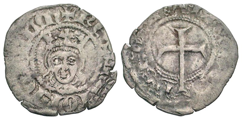 Spain, Majorca. Jaume II. 1276-1311. AR dinero (17 mm, 0.67 g, 11 h). + RЄX MΛIORICΛRUM, crowned facing bust / + IACOBUS | DЄI GRA :, Latin cross. Crusafont 539; ME 2051 (Jaume III); Burgos 1393 (Jaume III). Near VF, toned.