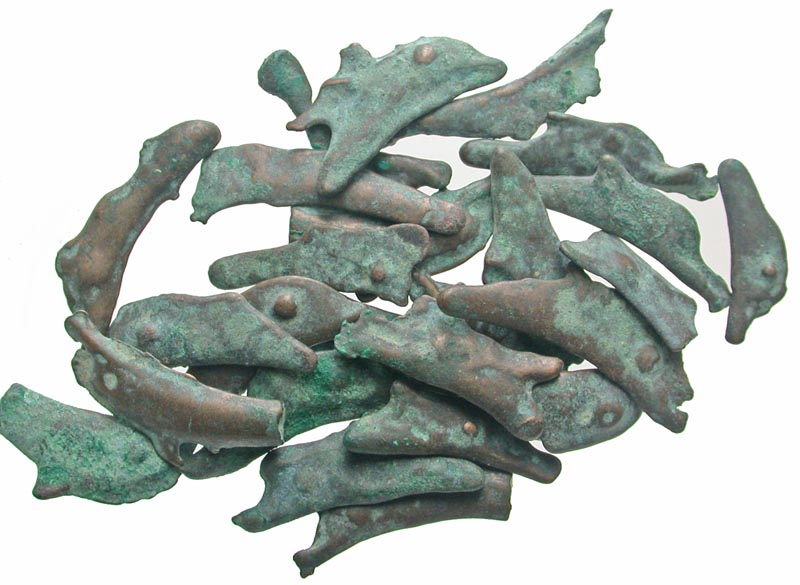 [Greek]. Lot of 25 Dolphin Protomoney. Sarmatia, Olbia. 5th century B.C. Lot of 10 proto-money, dolphin with fin, 19-28 mm. F-VF. SNG BM Black Sea 361; SNG Cop 72. All group lots are sold as-is, returns not accepted. The coins shown are the exact coins you will receive. All group lots are sold as-is, returns not accepted. The coins shown are the exact coins you will receive.