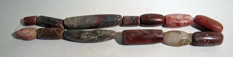 Tairona Necklace from Colombia, ca. 1000 - 1500 AD. A fine Tairona necklace from Colombia, ca. 1000 - 1500 AD. It is 26 long and is comprised of very large carnelian and agate beads, the largest of which is 3-3/4 long. Beautiful colors. Ex New World Artifacts Gallery. Value range: $400 - $600.