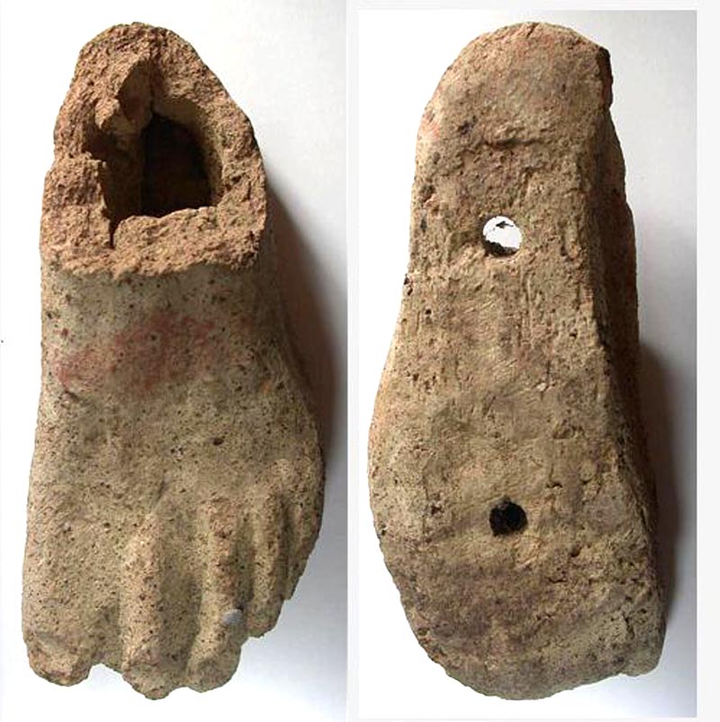 Etruscan Male Foot. Male foot from a statue. 5th-2nd century BC. 7x3 inches. Fully intact except for the break at the ankle, some red paint still remains. Value range: $50-100. Found in the Caeres area of Italy (north of Rome) by the consignor in the 1950s.