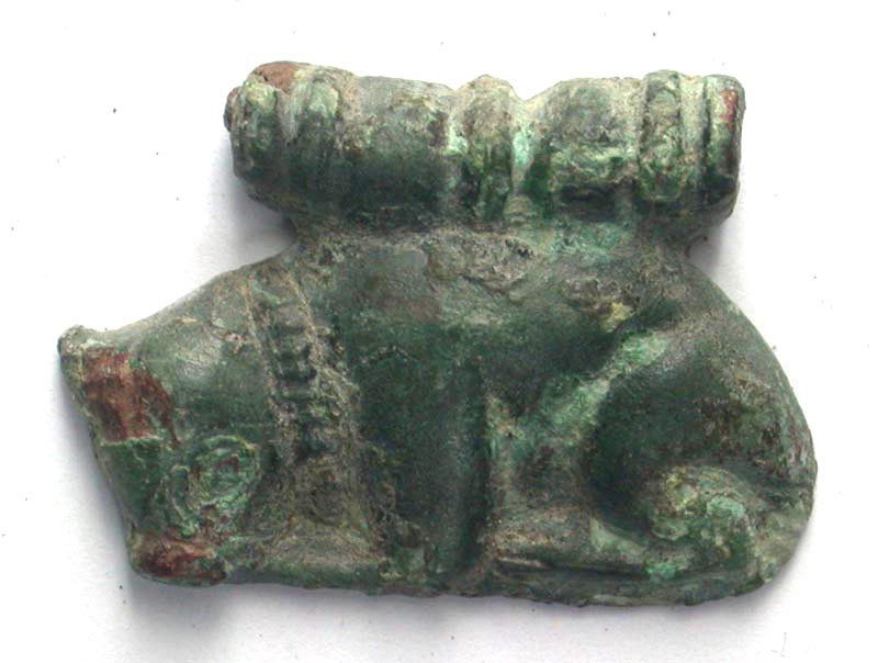 Celtic/Etruscan Necklace Adornment, Cat. A bronze necklace adornment in the form of a sleeping cat. 5th-3rd century BC. 1.5x1 inches. Attractive blue-green patina. Value range: $100-150. Found in Italy by the consignor in the 1950s.