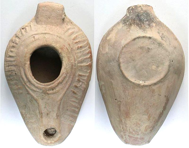 Lot 60-429. Roman Oil Lamp with Geometric Design.