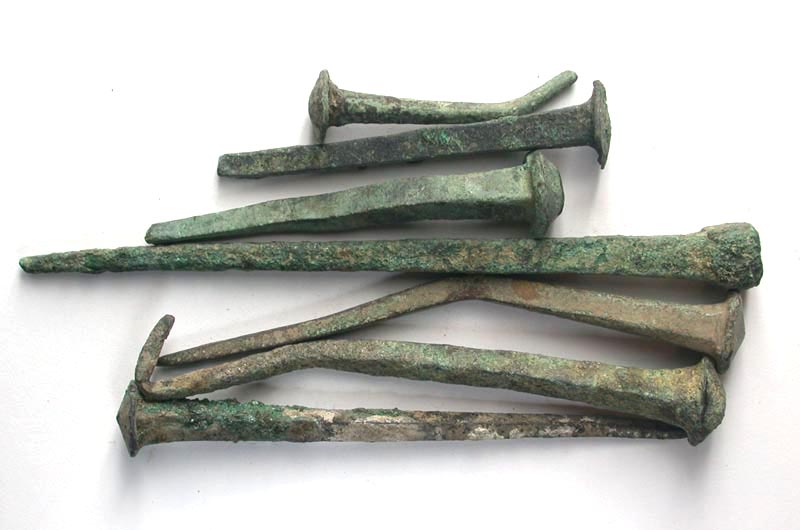 Lot of 7 Roman Nails. 1st-4th century AD. They range from 3.5 to 1.5 inches. All with minimal earthen adhesions. Value range: $75-100. Found in Italy by the consignor in the 1950s.