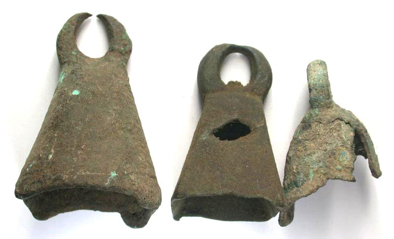 Lot of 3 Bronze Bells. 1st-4th century AD. They range from 3 to 2 inches. All with minimal earthen adhesions. One is holed, the third is broken. Value range: $75-100. Found in Italy by the consignor in the 1950s.