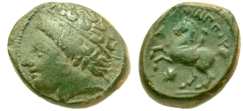 The left-facing Apollos and horseback-youths in this series appear much less often than the usual right facing devices - presumably both to left is scarcer still