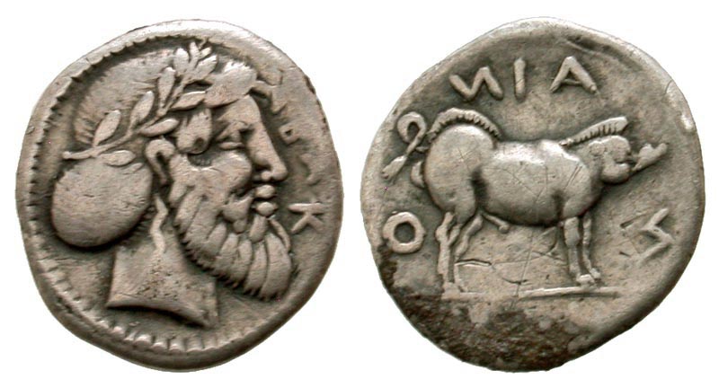 Lot 006. Sicily, Abakainon. ca. 450-400 B.C. AR obol. Very Rare. Ex Gorny & Mosch sale 200, 1172.