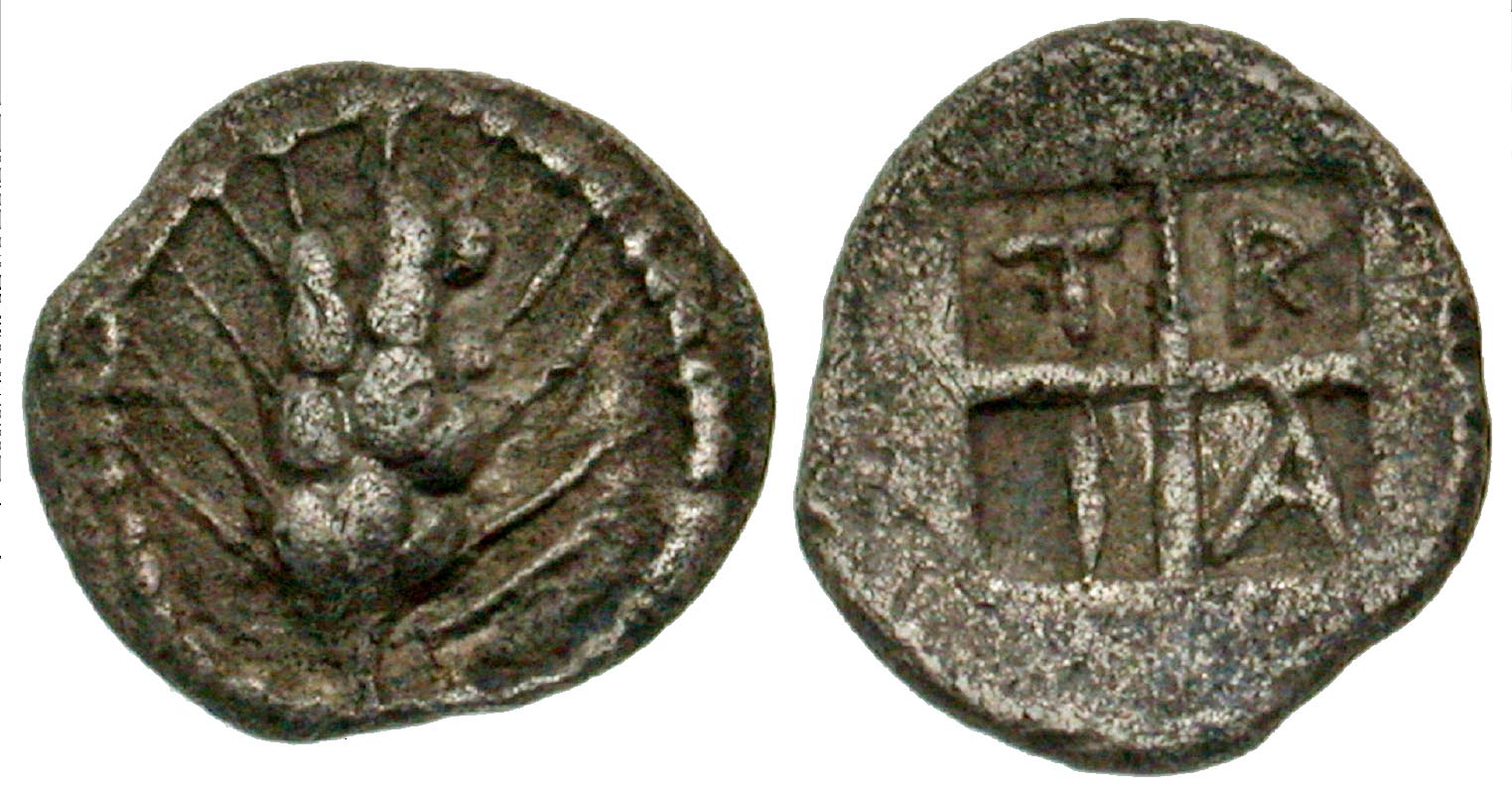 Lot 010. Macedon, Tragilos. Ca. 450-400 B.C. AR hemiobol. From the D. Hay Collection.
