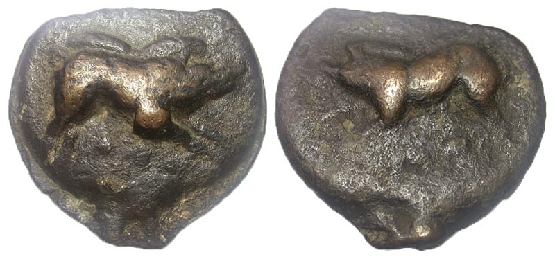 Anonymous. 275-270 B.C. Æ Aes Grave quadrans (43.8 mm, 81.8 g, 12 h). Libral standard, heavy series. Rome. Boar advancing right, three pellets below / Boar advancing left, three pellets below. Crawford 18/4; Sydenham 18; Thurlow & Vecchi 11. VF, Scarce.