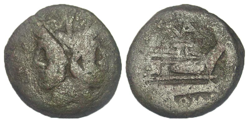 Matienus. Ca. 179-170 B.C. Æ as (32.4 mm, 24.82 g, 0 h). Uncial standard. Rome. Laureate head of bearded Janus; I above / ROMA, Prow of galley right; I to right, MAT monogram above. Crawford 162/3; Sydenham 321a. aFine.