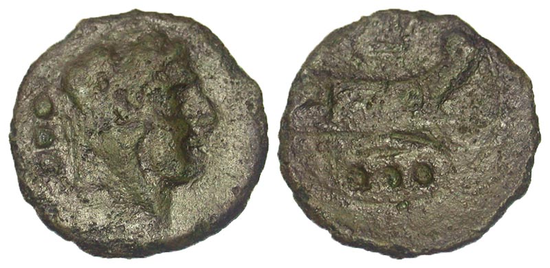 Anonymous. 91 B.C. Æ quadrans (19.0 mm, 2.93 g, 9 h). Rome. Head of young Hercules right, wearing lion's skin headdress, three pellets behind / ROMA, prow of galley right, three pellets below. Crawford 339/4a; Sydenham 679c. aVF, dark green patina.