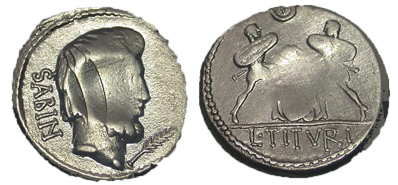 Lot 7-159. L. Titurius L.f. Sabinus. 89 B.C. AR denarius. Rome.
