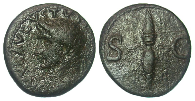 Lot 7-164. Divus Augustus. Died A.D. 14. Æ as. Rome, A.D. 34-37.