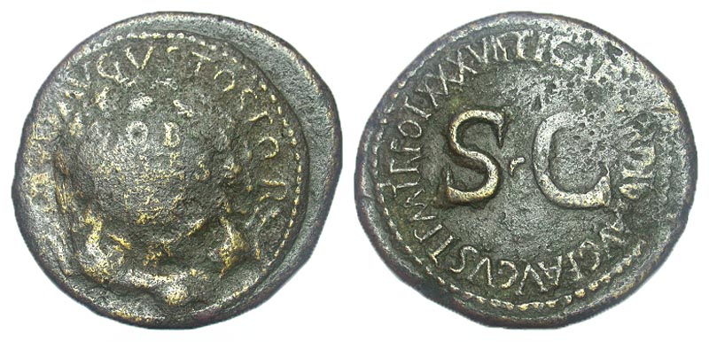 Lot 7-167. Tiberius. A.D. 14-37. Æ sestertius. Rome, A.D. 22-23.