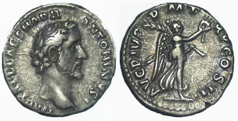 Lot 7-195. Antoninus Pius. A.D. 138-161. AR denarius. Rome, A.D. 139.