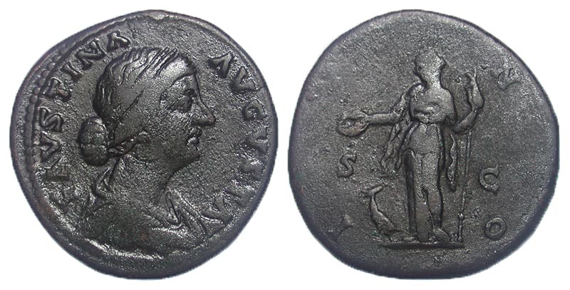 Lot 7-201. Faustina II. Augusta, A.D. 147-175. Æ sestertius. Rome, A.D. 161-164.