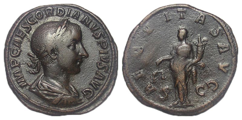 Lot 7-214. Gordian III. A.D. 238-244. Æ sestertius. Rome, A.D. 239-240.