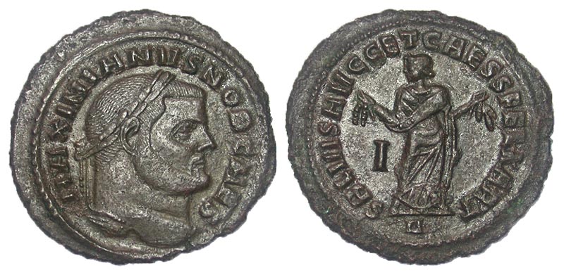 Lot 7-231. Galerius. As Caesar, A.D. 293-305. Æ Follis. Carthage, A.D. 303. Ex William C Boyd collection, with his ticket, Ex Sotheby's 1892, Ex Baldwin's sale 42, 2005.