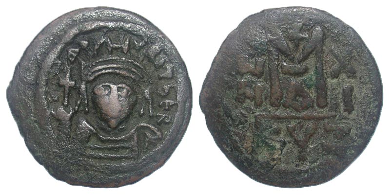 Lot 7-274. Maurice Tiberius. 582-602. Æ Follis. Cyzicus, 591-592.