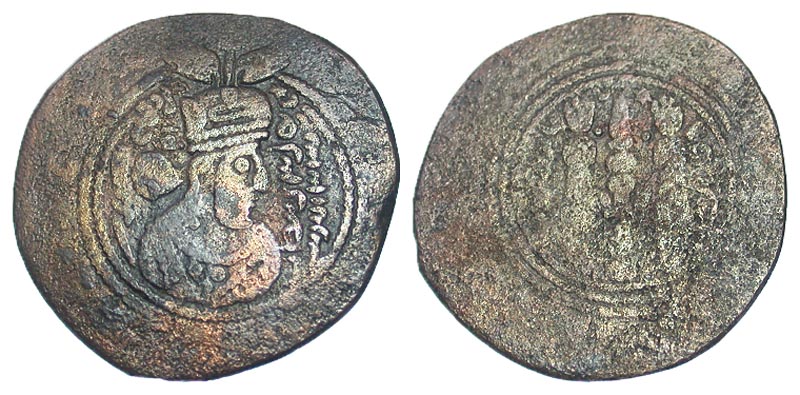 Lot 7-296. Arab-Sasanian. Farrukhzad. ca. 75-79/695-699. Æ pashiz. DST (Dasht).