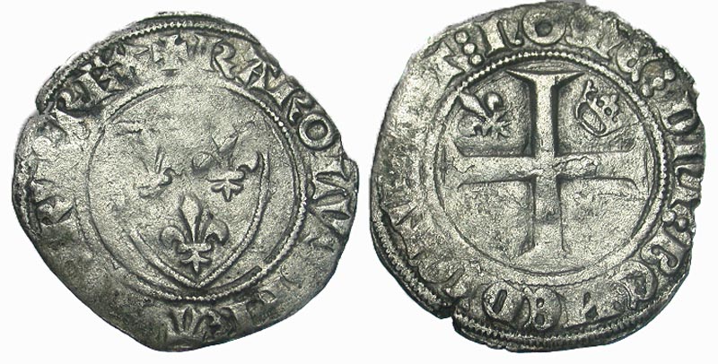 Lot 7-309. France, Royal. Charles VI. 1380-1422. AR blanc guenar. Paris, 1411.