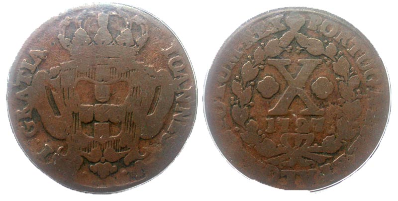 Lot 7-312. Portugal. Joao V. 1706-1750 (dated 1727). Æ 10 reis. 1727. PCGS graded and slabbed. Graded G06.